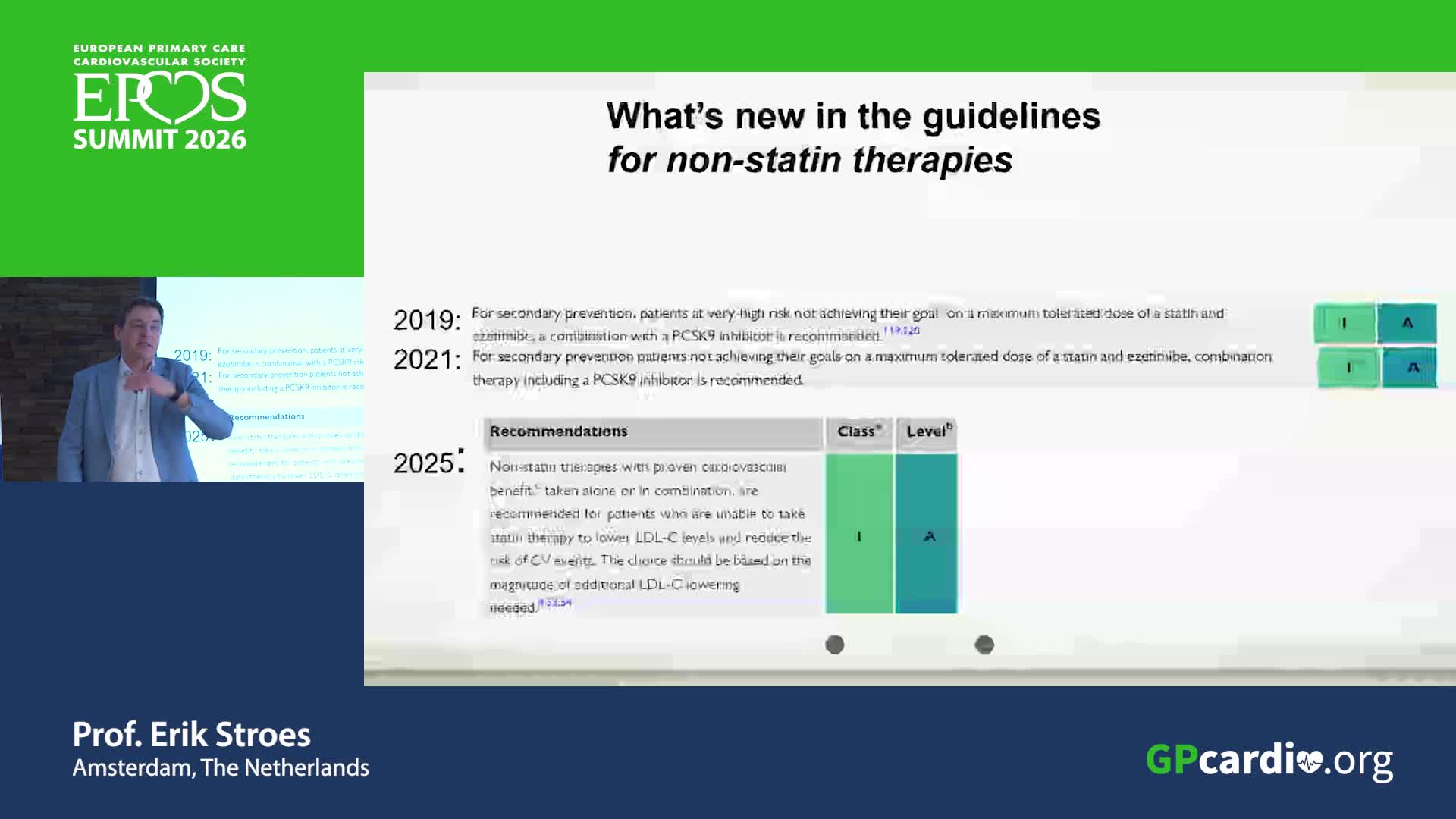 Prof. Erik Stroes, Amsterdam, The Netherlands, provided a brief introduction on the management of LDL-cholesterol. He discussed LDL-c targets and most recent dyslipidemia guidelines and their implications for primary care. The introduction was followed by discussion with the EPCCS board and council members representing primary care from multiple European countries.